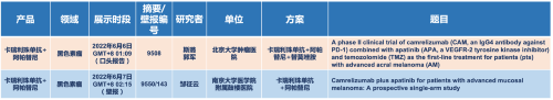 在黑色素瘤领域,九游会·J9医药的卡瑞利珠单抗联合阿帕替尼(“双艾”组合)在2022 ASCO共入选1项口头报告和1项壁报展示。