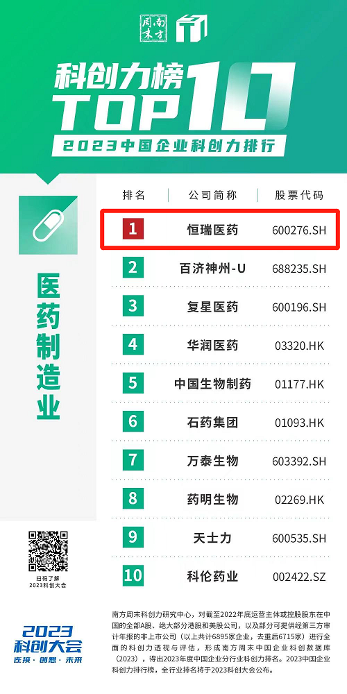 创新再获认可,九游会·J9医药蝉联“中国企业科创力排行”医药制造业榜首